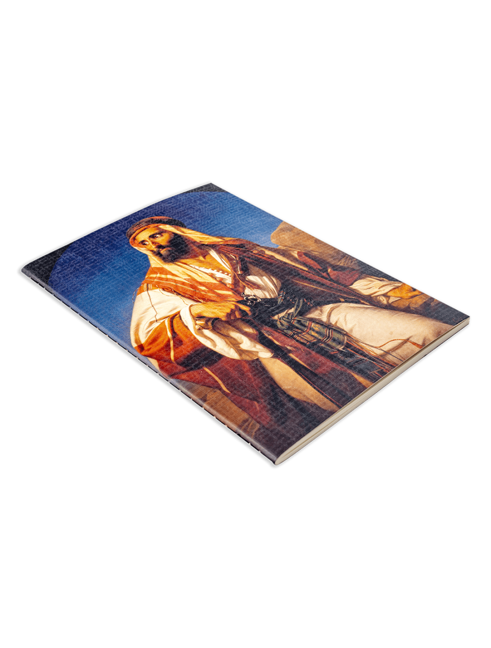 A soft touch notebook with an imprint of Egide Godfried Guffens' "A Bedouin Chieftain" (1846, oil on canvas). Egide Godfried Guffens was a Belgian painter, best known for his monumental religious and historical murals. This artwork is part of the exhibition "Lusail Museum: Tales of a Connected World" in Qatar Museums Gallery, Al Riwaq. The exhibition puts a spotlight on world-class collection of Orientalist art, archaeological artefacts and media from antiquity to the 21st century.